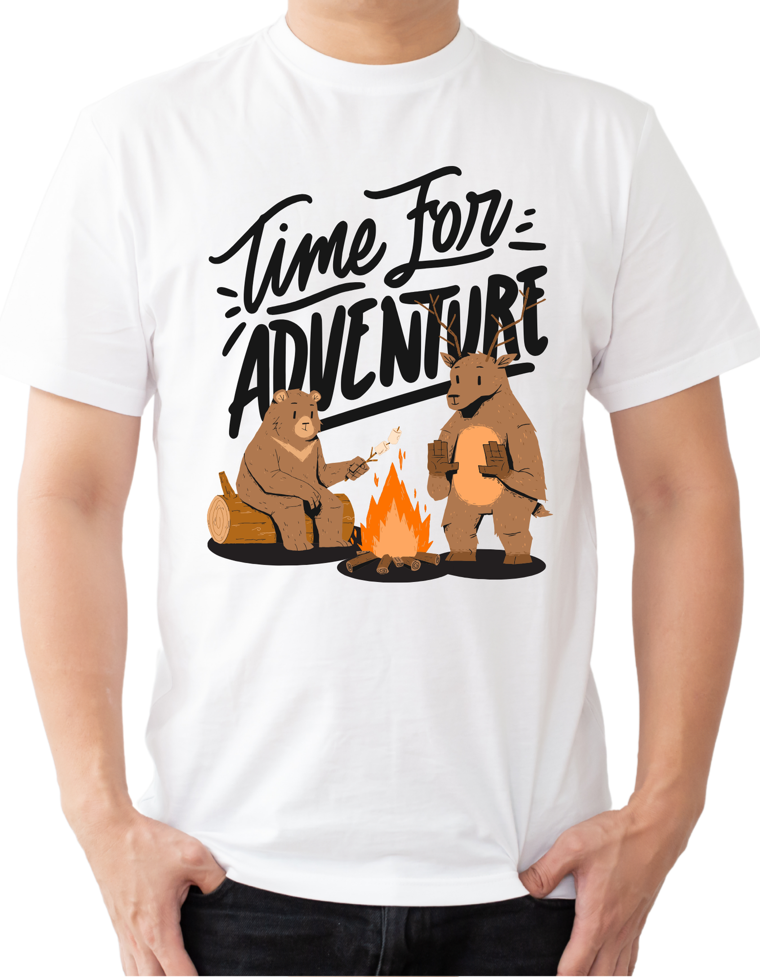 Be the first to review “Time for Adventure Graphic T-Shirt, White, Half Sleeve, Bear and Deer Design” Cancel reply
